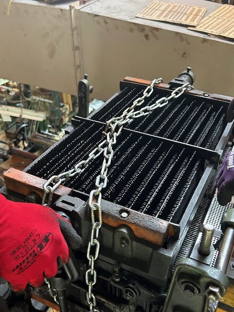 たて糸を上げ下げするジャガード。80年前の製造ですので部品がすり減ったり、曲がったり。トラブルが多発しておりました。