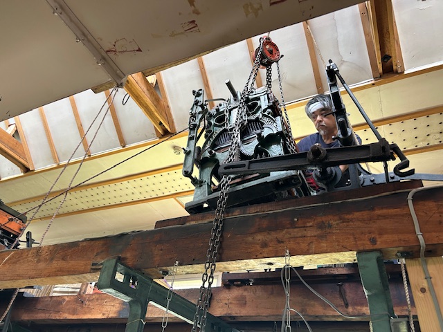 重量が100キロ程度ありますから、チェーンブロックという道具を使って持ち上げ、無事設置出来ました。